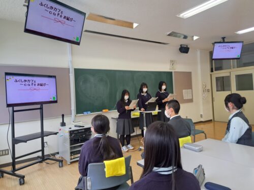 福祉科 2年生に引き継ぎます! 2026.01.30 福祉科カフェ「caféお結び」の引継会をおこないました。 3年生が2年生へ実践を交えながらカフェの開催方法や心構え、参加者との交流について教えてくれました。 新3年生も「福祉科カフェ~caféお結び~」開催します!!